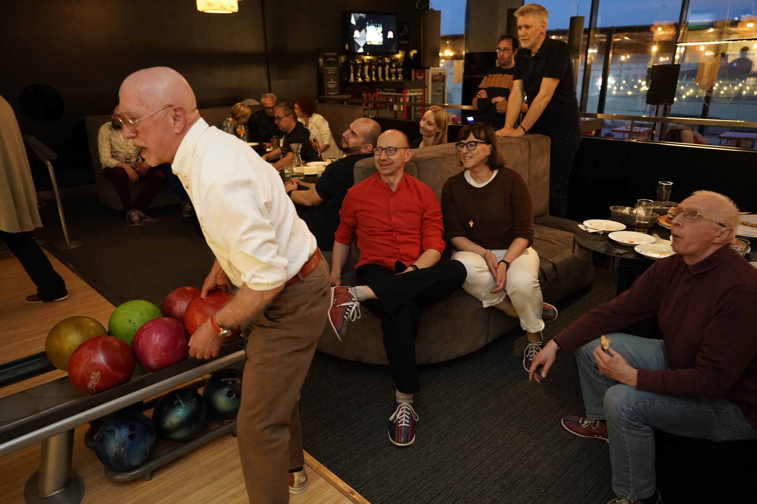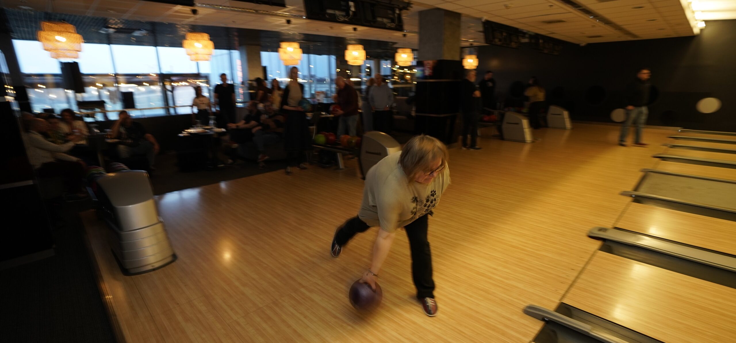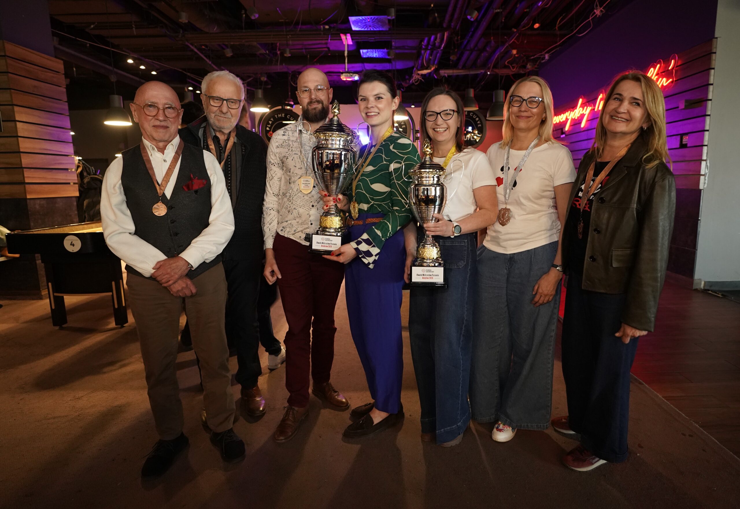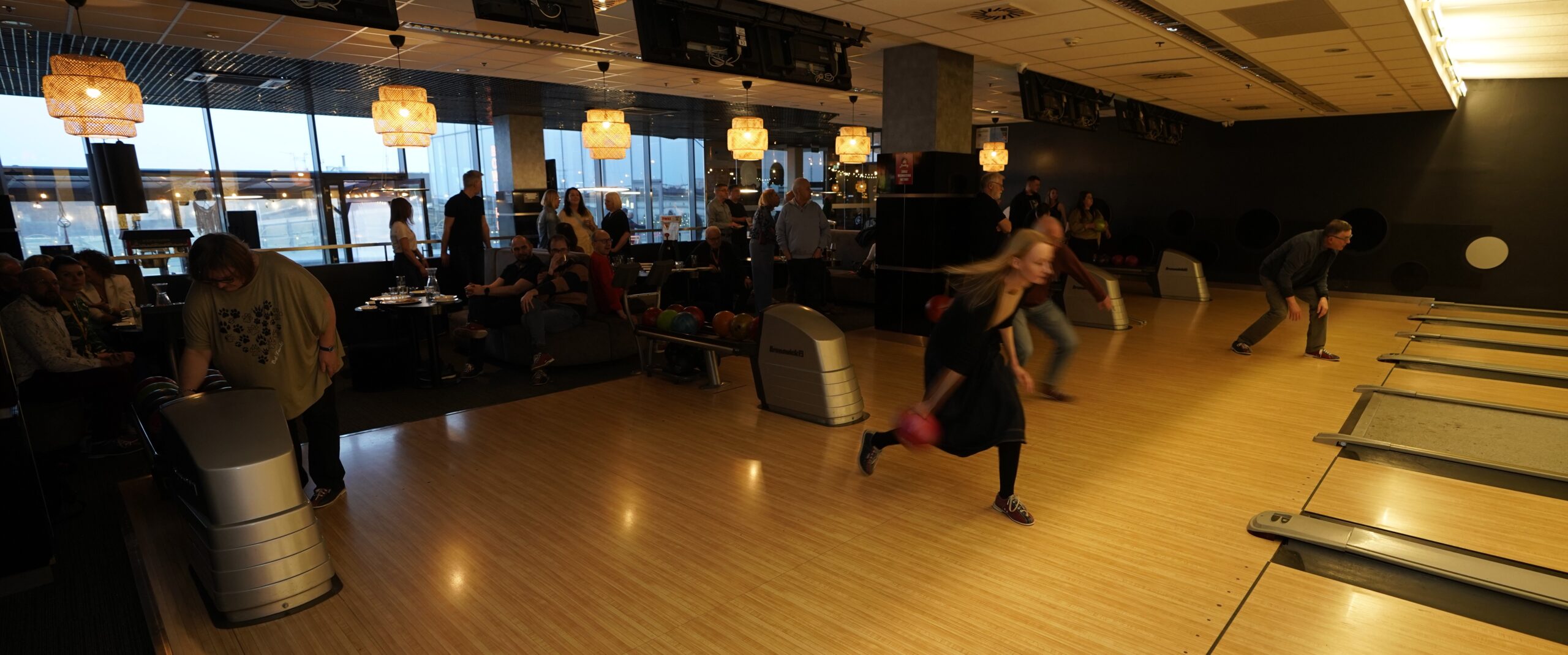 Uroczyste wręczenie pucharów odbyło się tego samego wieczoru poza Klubem. Spotkaliśmy się w MK Bowling, gdzie formalna część szybko przeszła w integrację na luzie. Po kilku godzinach maksymalnej koncentracji przy stole brydżowym przyszedł czas na ruch, śmiech i odrobinę sportowej rywalizacji w zupełnie innej formie. Bowling, shuffleboard i rozmowy bez kart w ręku – idealne domknięcie dnia, które pokazuje, że brydż to nie tylko gra, ale przede wszystkim ludzie i relacje.
