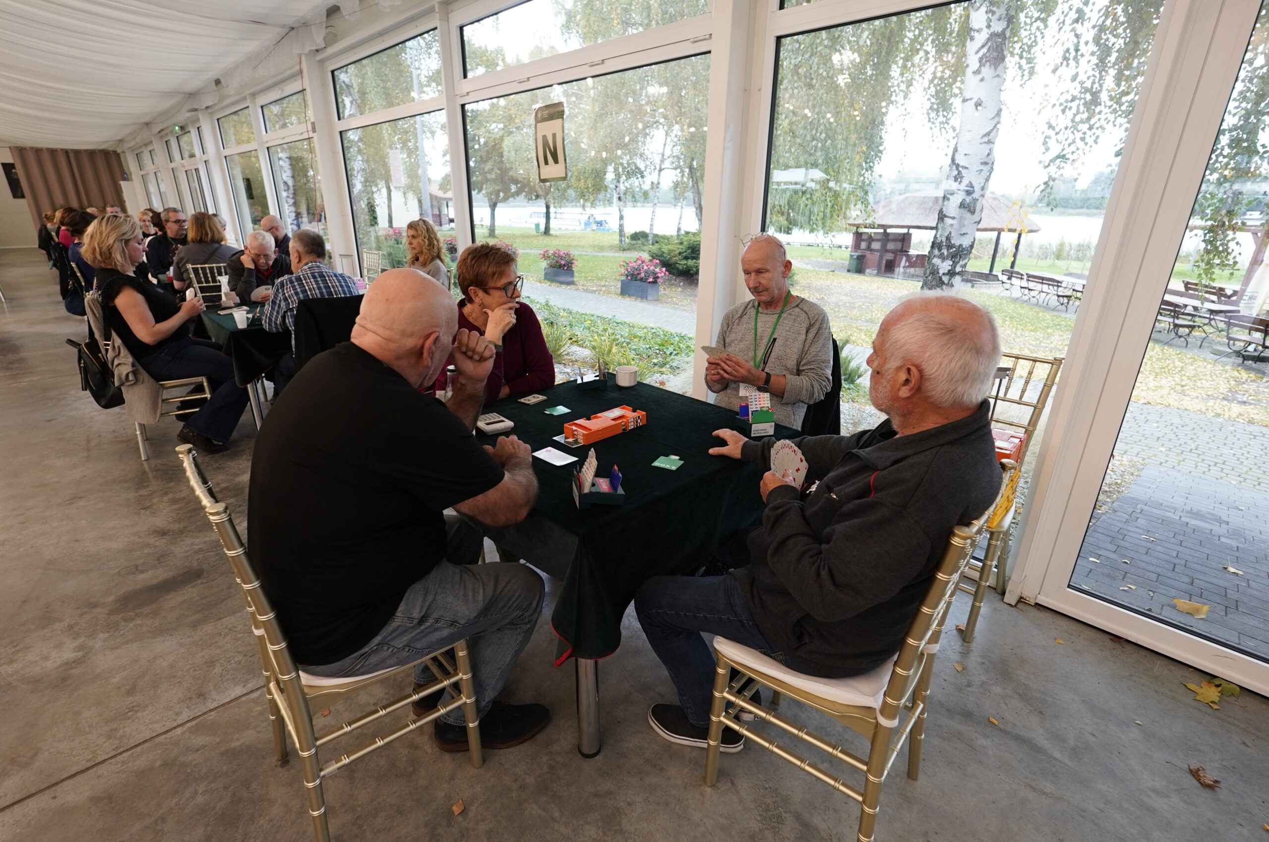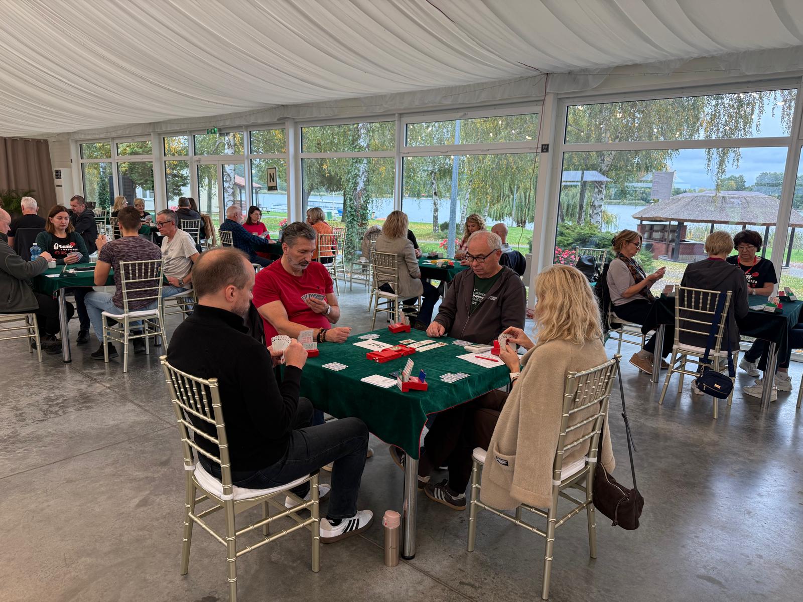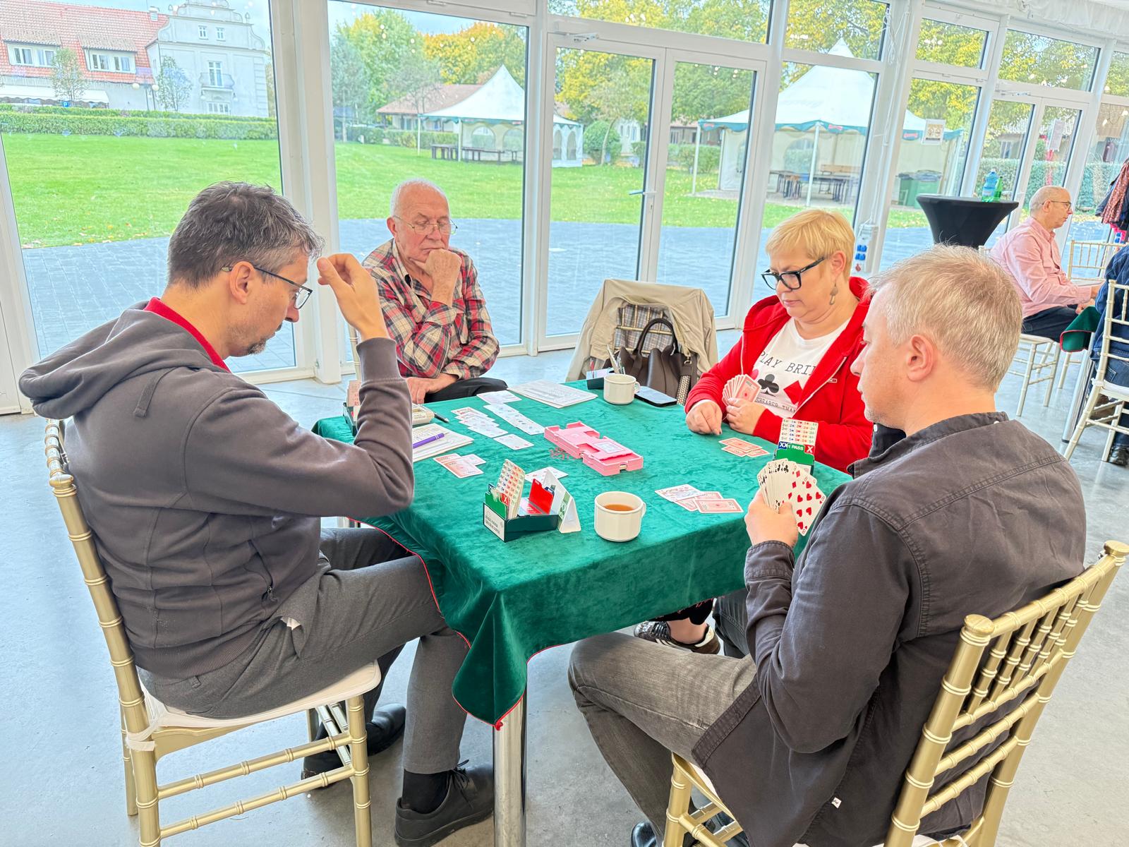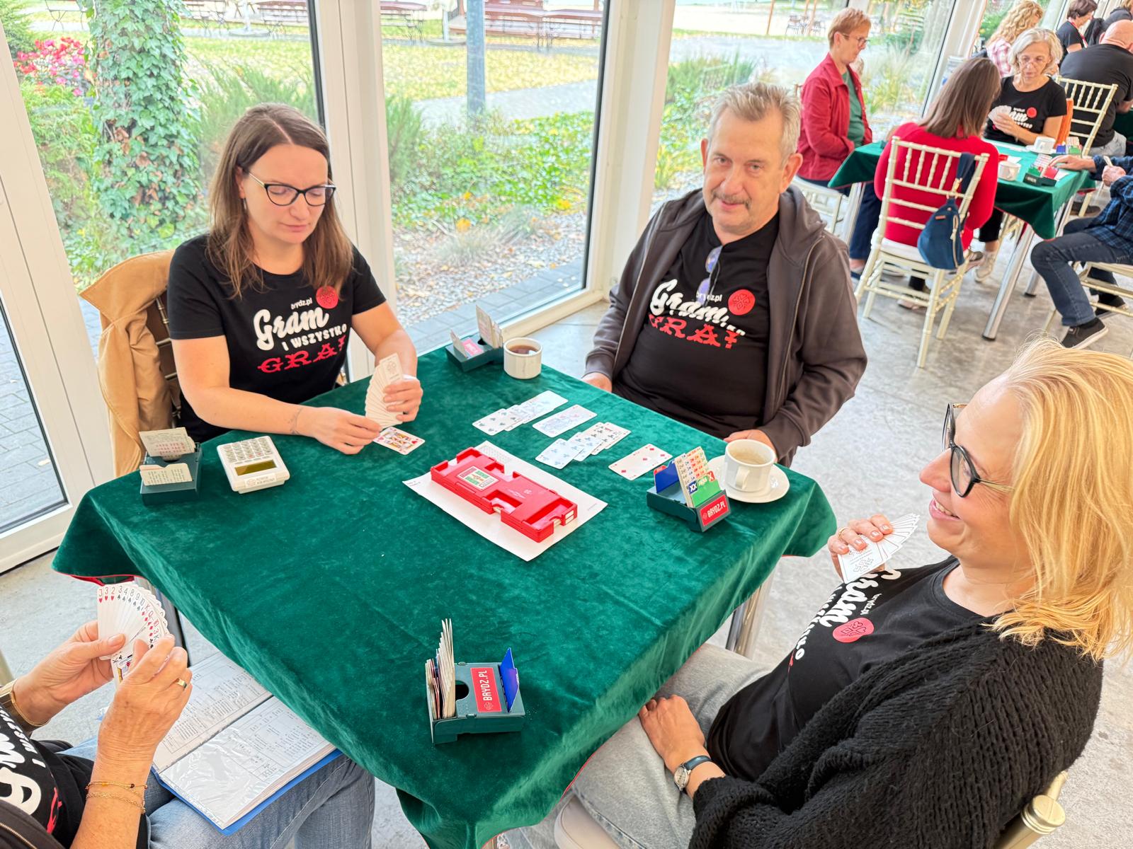 W mistrzostwach rywalizowali głównie zawodnicy z I i II ligi, natomiast GrzyboGranie zgromadziło pasjonatów, którzy dopiero zdobywają brydżowe doświadczenie. Wszyscy graliśmy w jednej sali, a między rozdaniami i wieczorami nie brakowało okazji do rozmów – nie tylko o brydżu 🙂