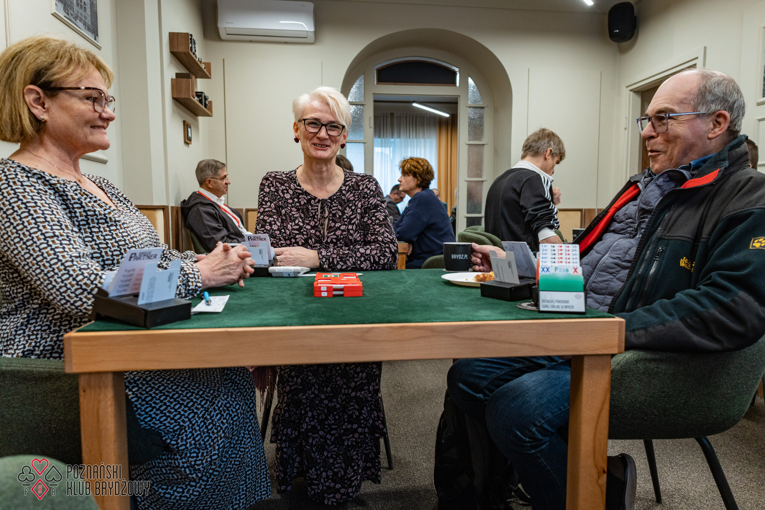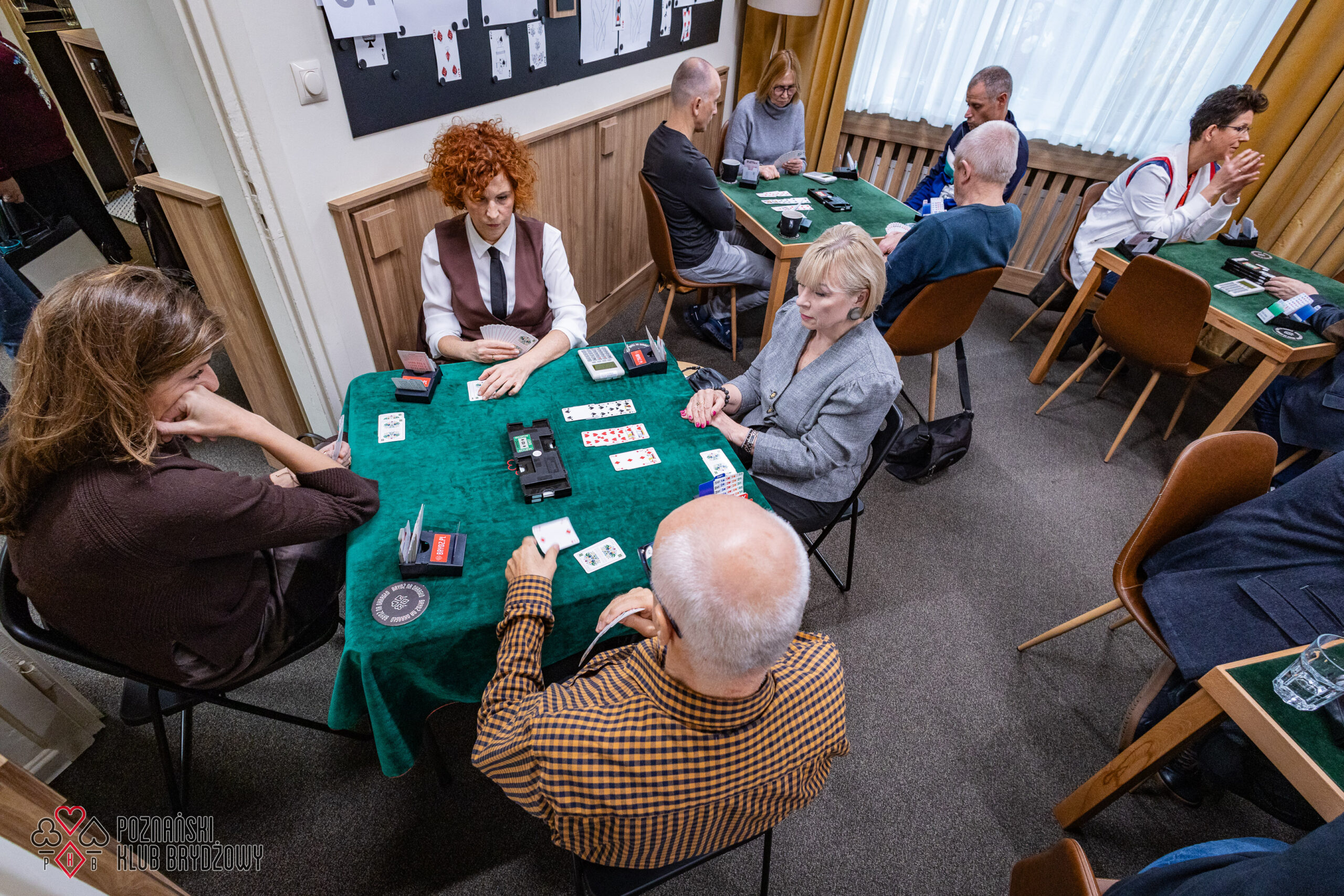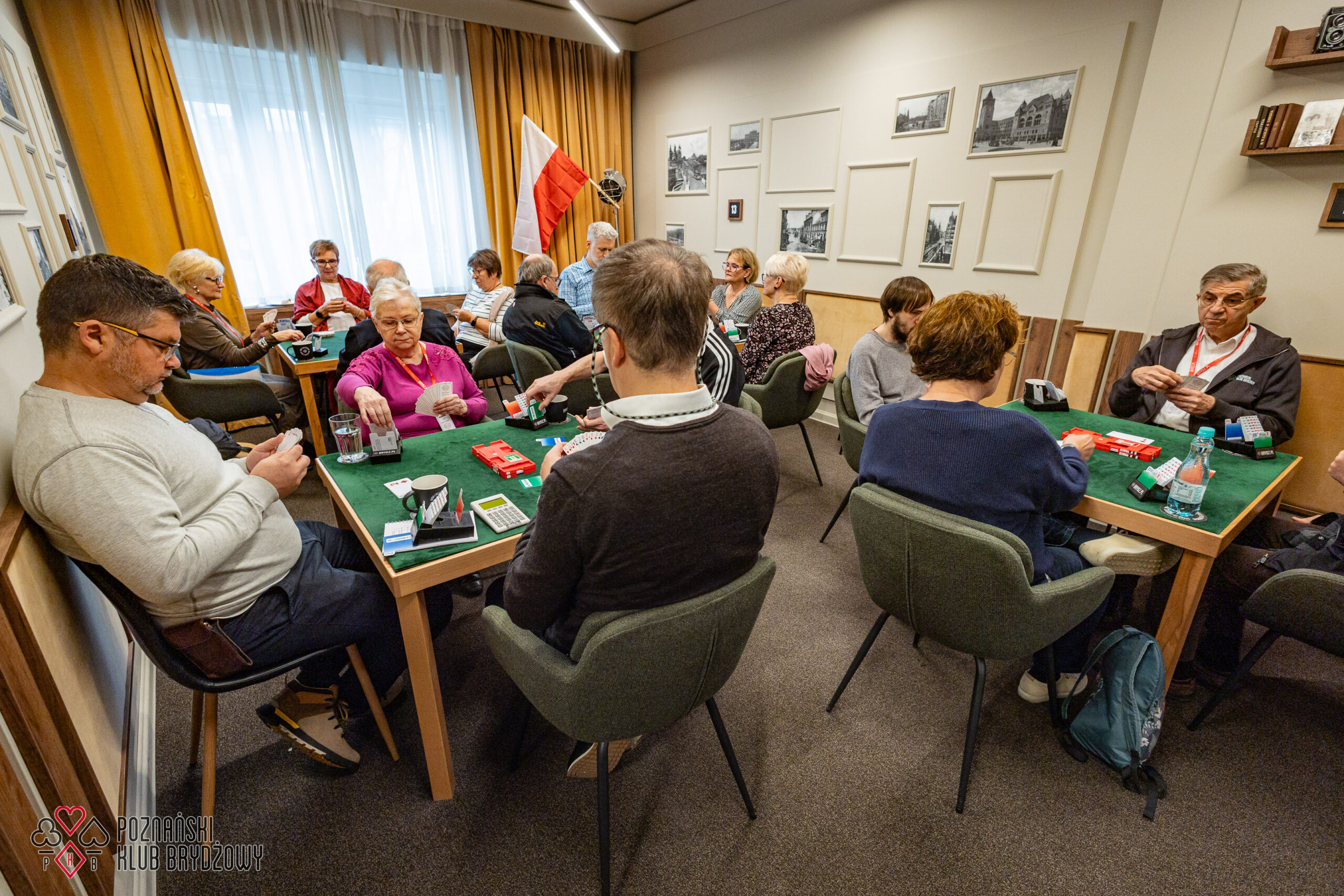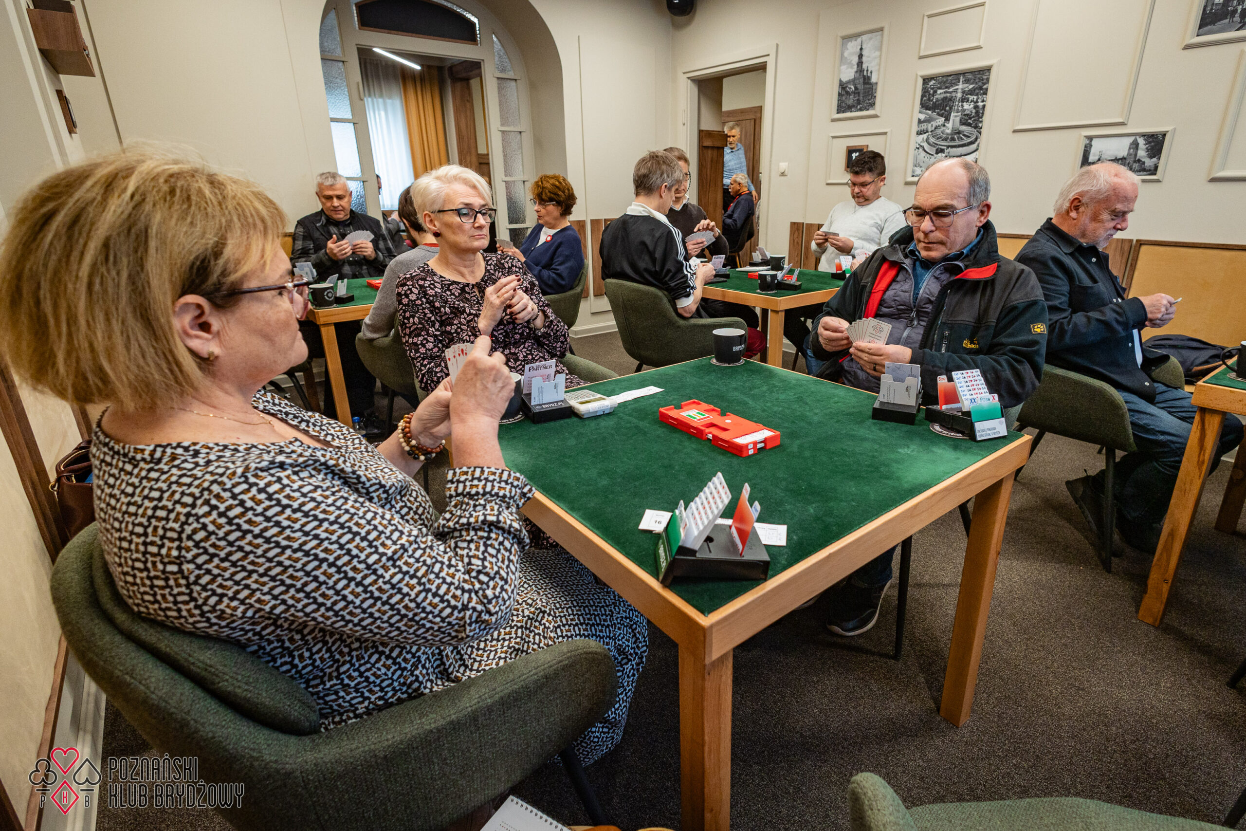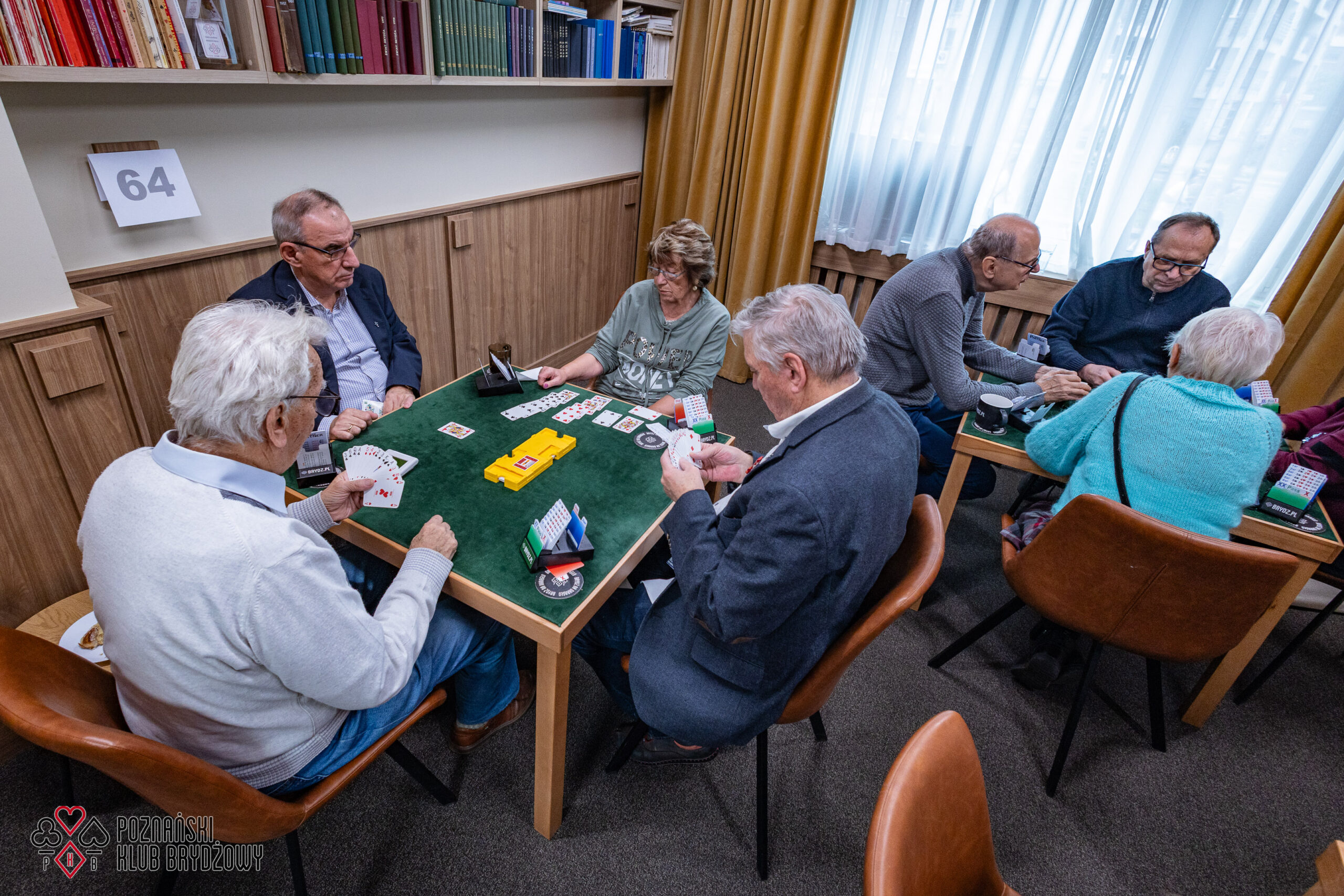Wspieraliśmy się pobliską lokalizacją szkoleniową ustawiając tam 10 stolików, stanowiące 2 sektory. Zmiana do kolejnej rundy następowała po 10 rozdaniach i wówczas pary dokonywały zmiany przemieszczając się około 100 metrów na odcinku Klub – sala szkoleniowa. Okazało się, że ro rozwiązane nie było żadnym problemem. Przeciwnie – podobało się licznym, którzy wykorzystali chwilę spaceru na dotlenienie i zrelaksowanie się :).