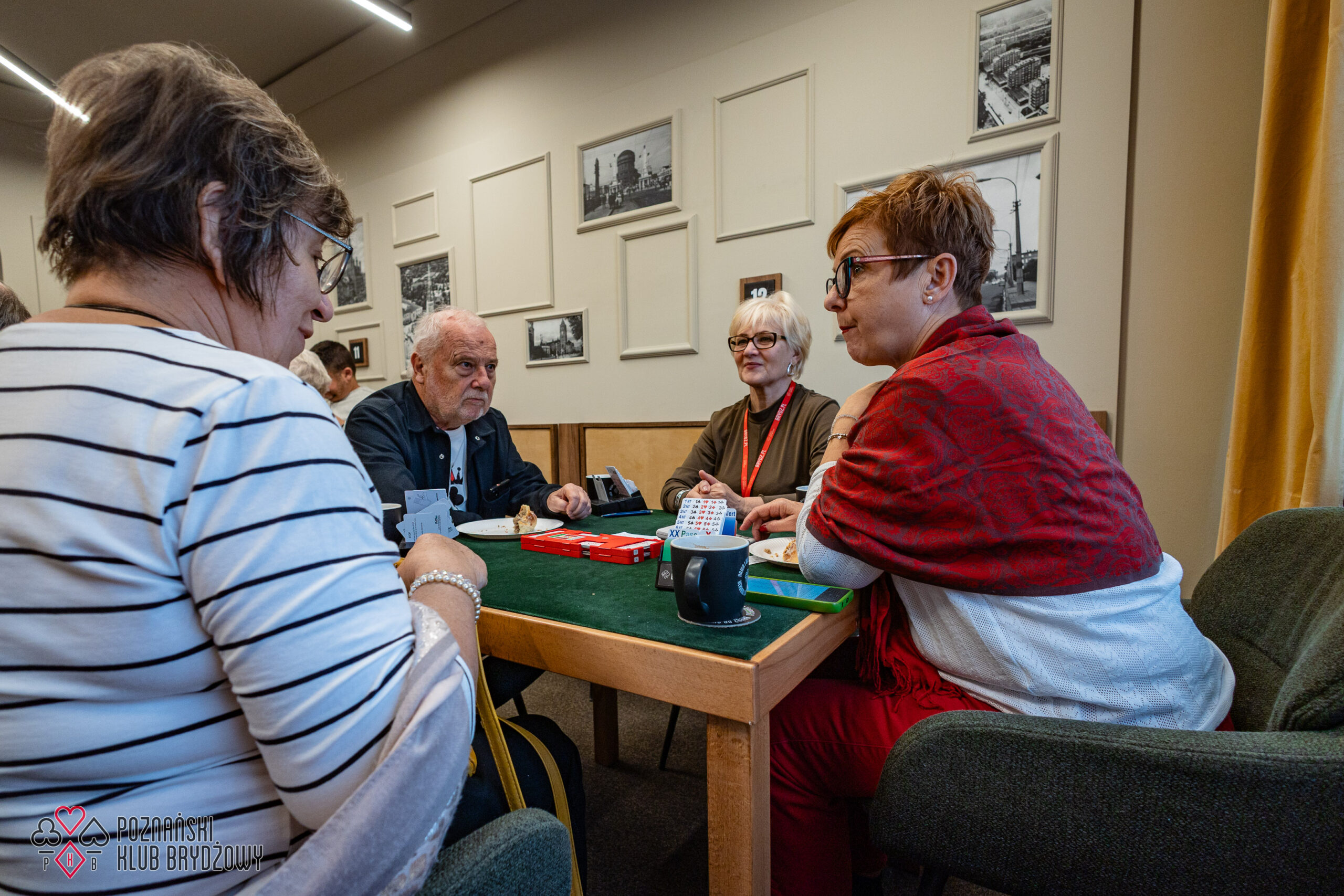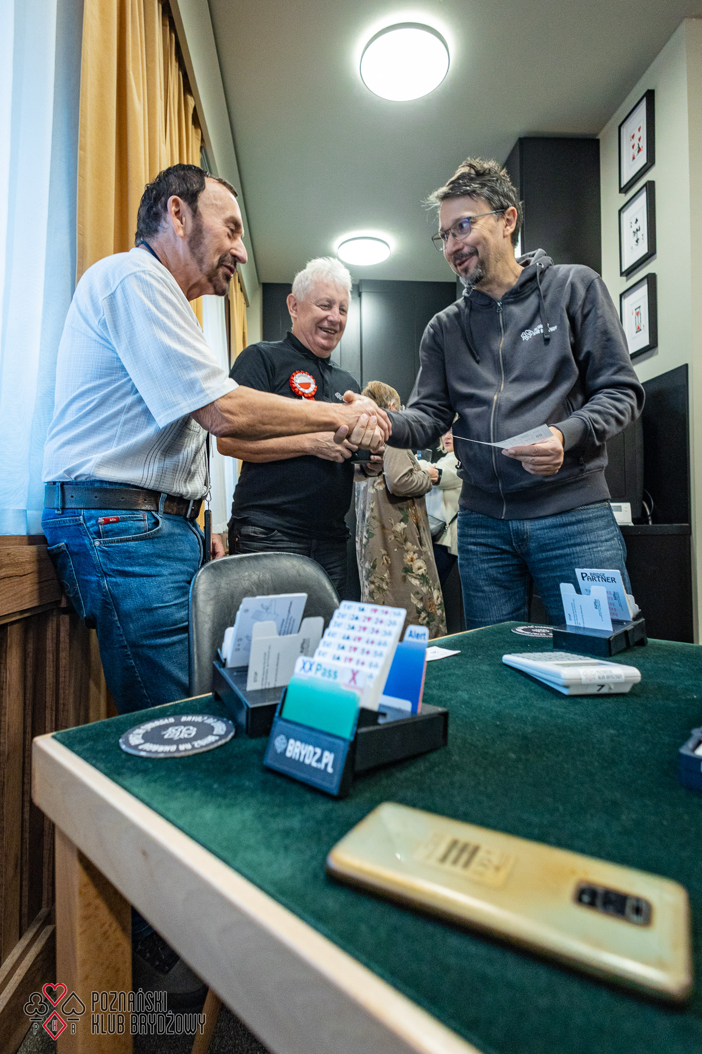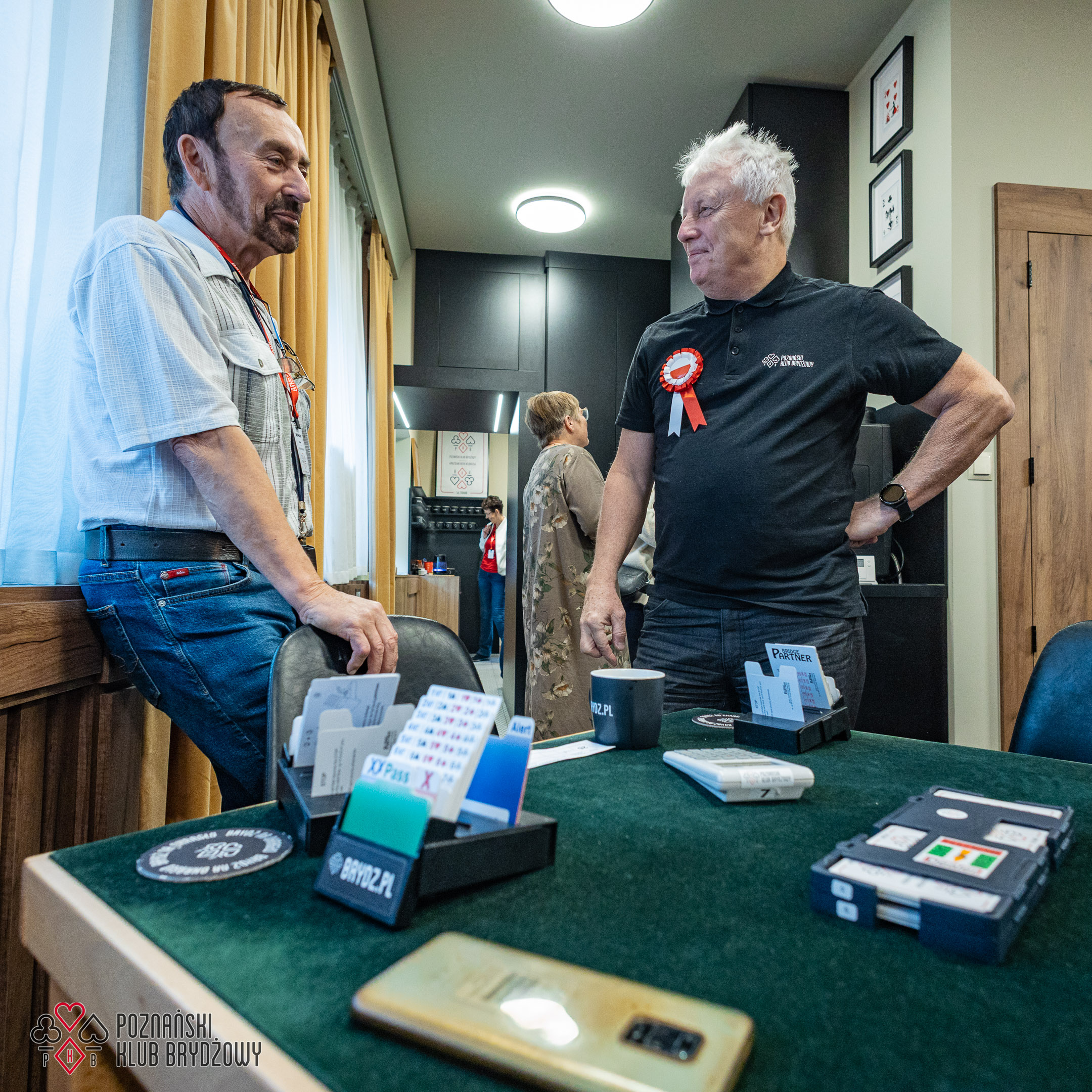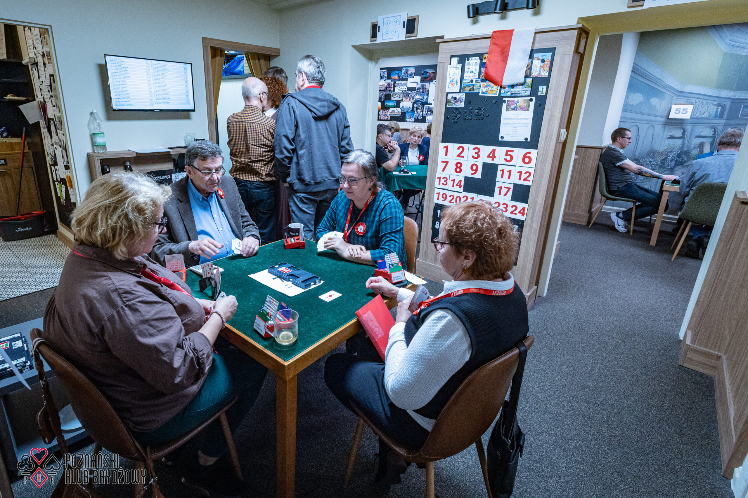 Wspieraliśmy się pobliską lokalizacją szkoleniową ustawiając tam 10 stolików, stanowiące 2 sektory. Zmiana do kolejnej rundy następowała po 10 rozdaniach i wówczas pary dokonywały zmiany przemieszczając się około 100 metrów na odcinku Klub – sala szkoleniowa. Okazało się, że ro rozwiązane nie było żadnym problemem. Przeciwnie – podobało się licznym, którzy wykorzystali chwilę spaceru na dotlenienie i zrelaksowanie się :).