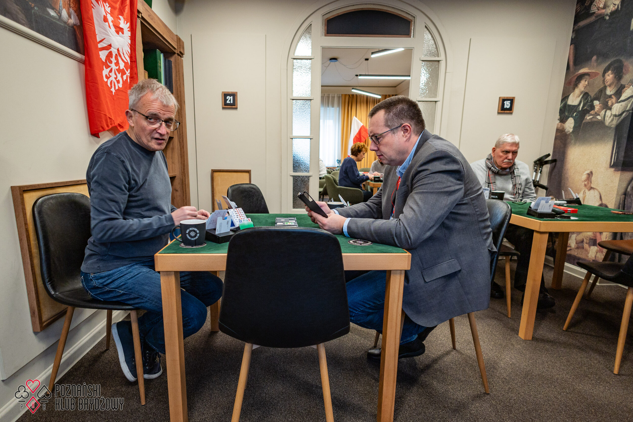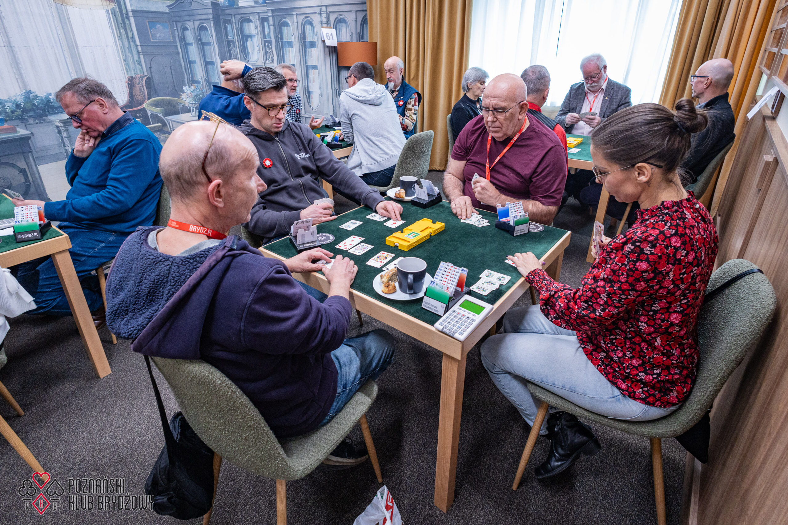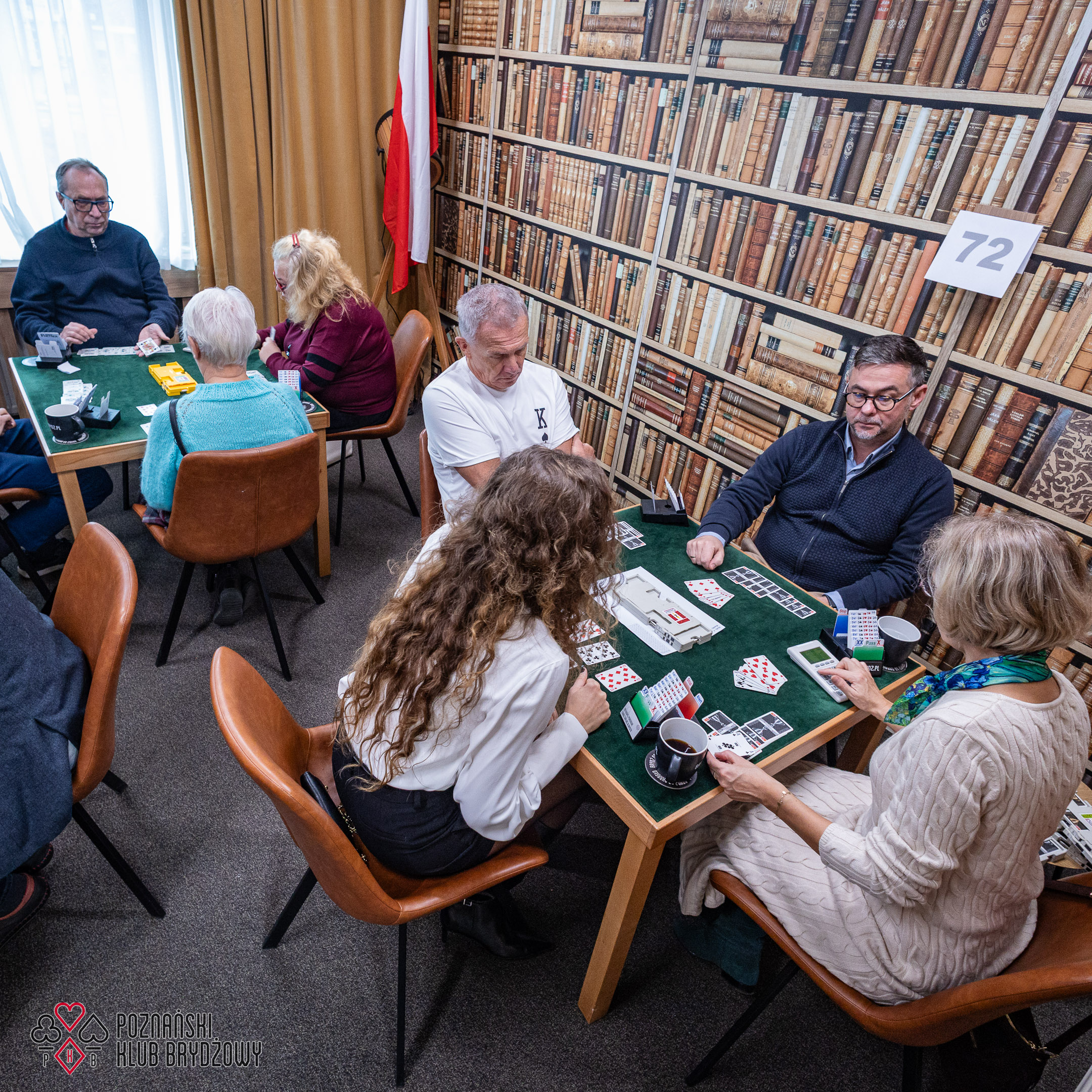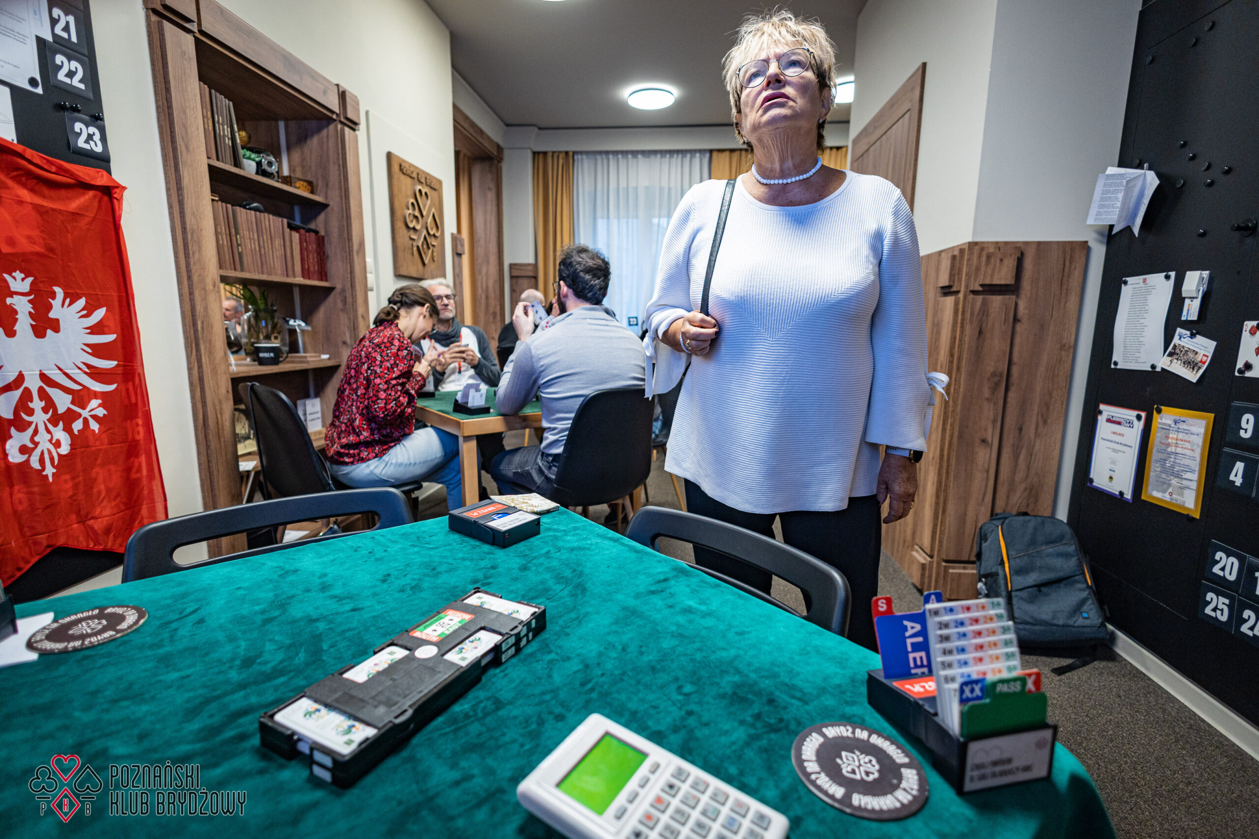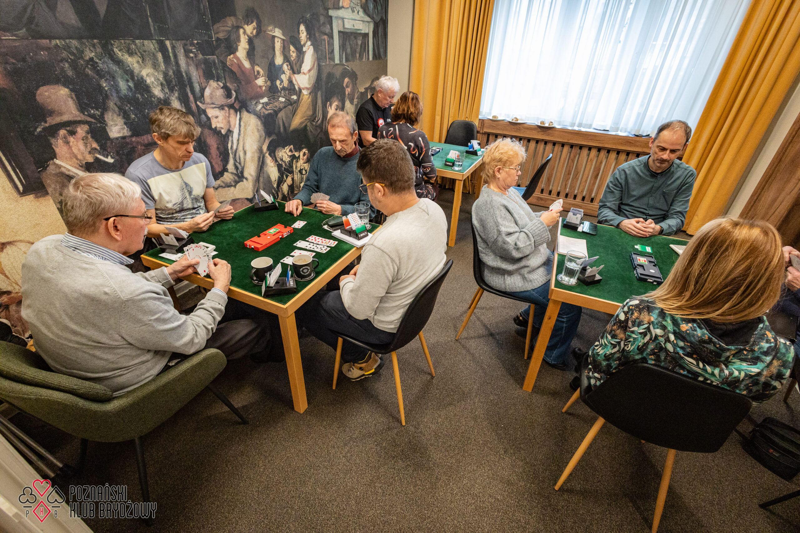 Wspieraliśmy się pobliską lokalizacją szkoleniową ustawiając tam 10 stolików, stanowiące 2 sektory. Zmiana do kolejnej rundy następowała po 10 rozdaniach i wówczas pary dokonywały zmiany przemieszczając się około 100 metrów na odcinku Klub – sala szkoleniowa. Okazało się, że ro rozwiązane nie było żadnym problemem. Przeciwnie – podobało się licznym, którzy wykorzystali chwilę spaceru na dotlenienie i zrelaksowanie się :).