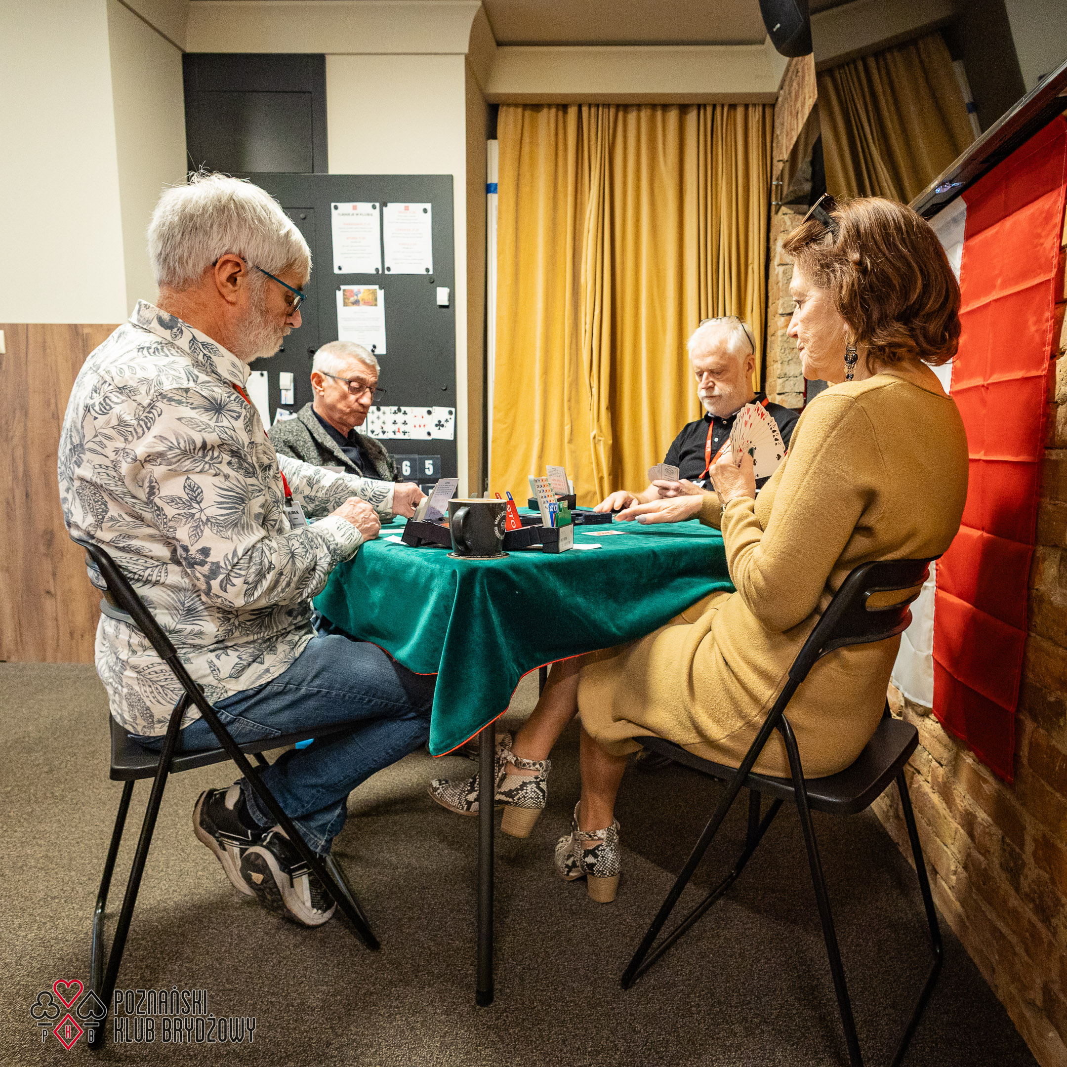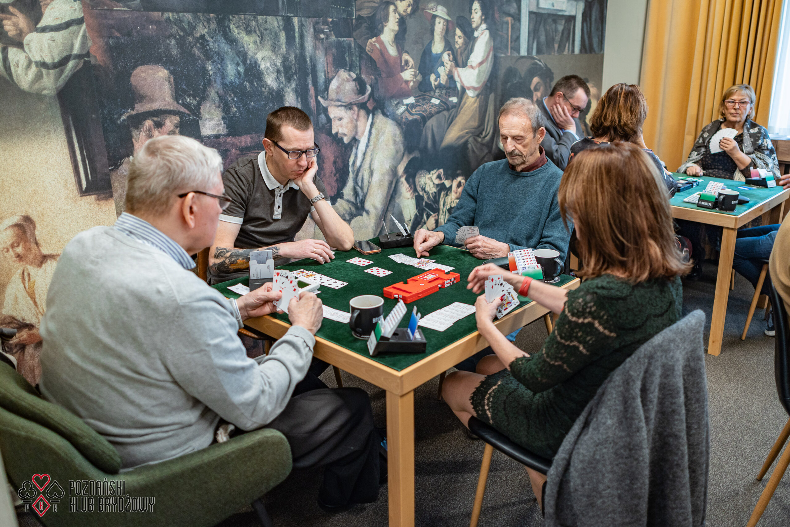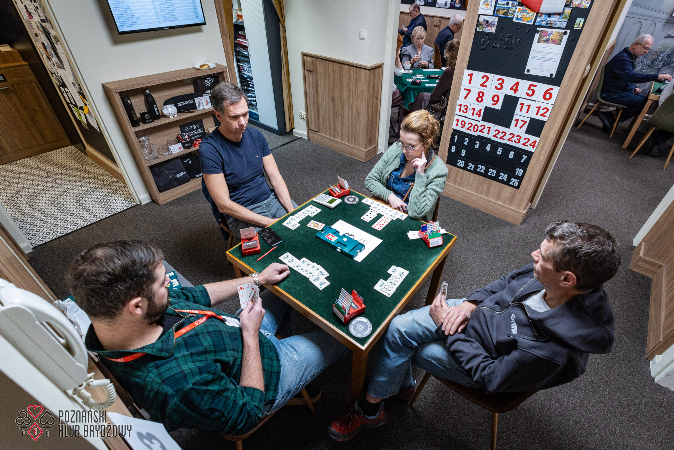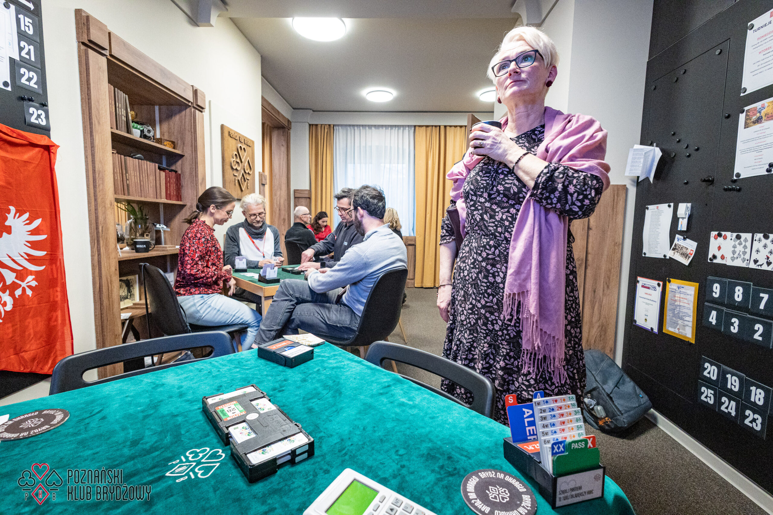 Wspieraliśmy się pobliską lokalizacją szkoleniową ustawiając tam 10 stolików, stanowiące 2 sektory. Zmiana do kolejnej rundy następowała po 10 rozdaniach i wówczas pary dokonywały zmiany przemieszczając się około 100 metrów na odcinku Klub – sala szkoleniowa. Okazało się, że ro rozwiązane nie było żadnym problemem. Przeciwnie – podobało się licznym, którzy wykorzystali chwilę spaceru na dotlenienie i zrelaksowanie się :).
