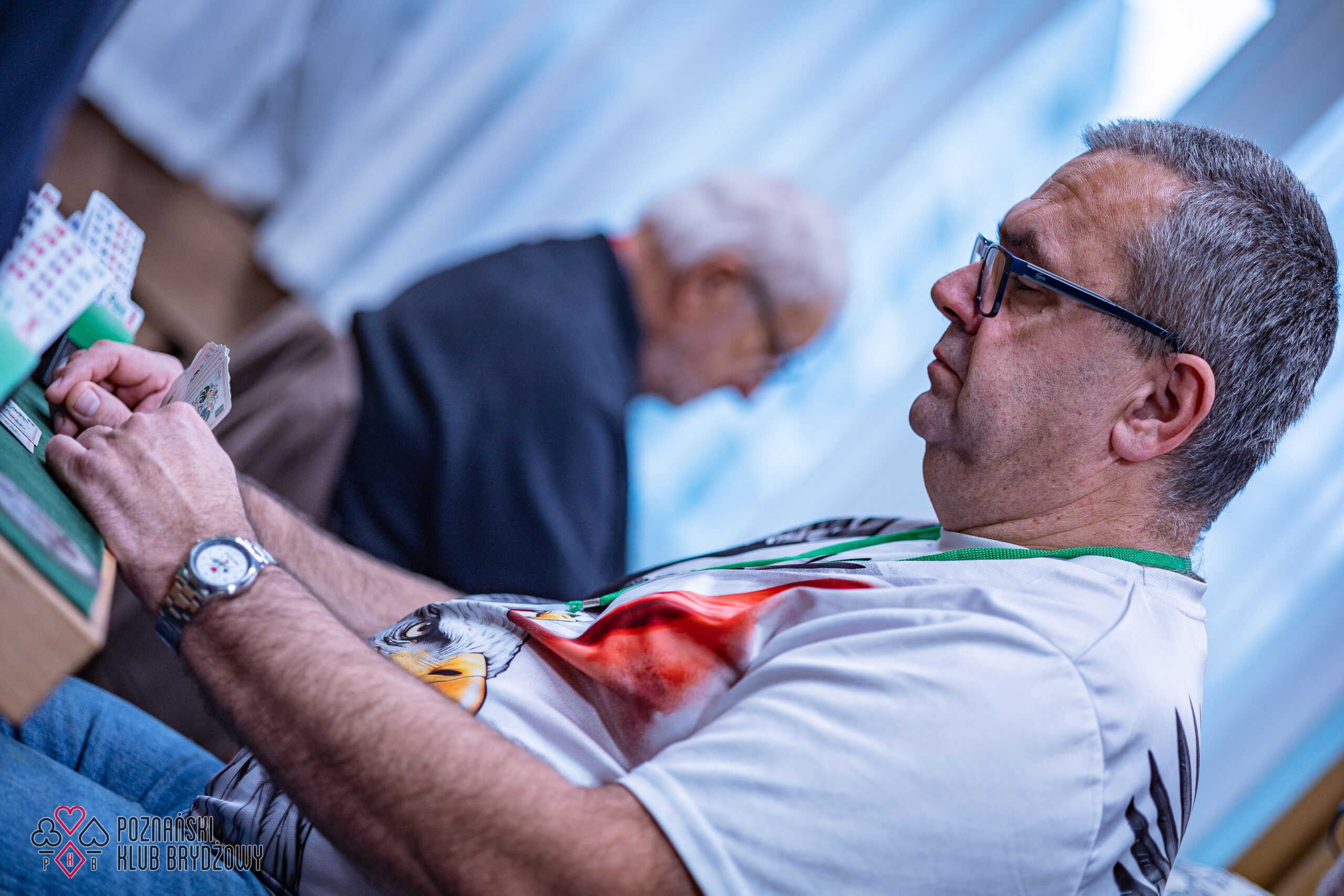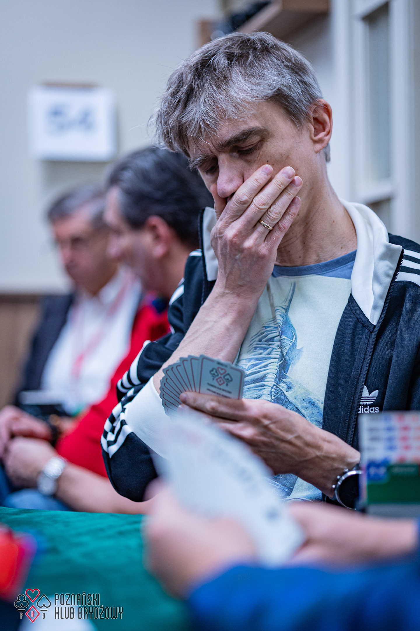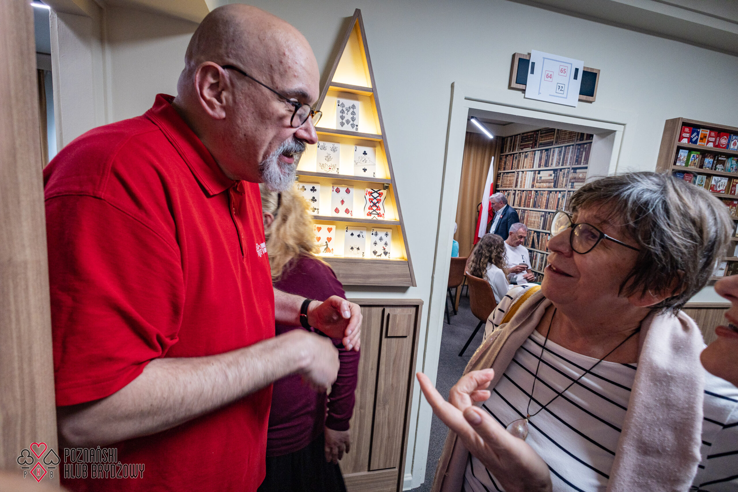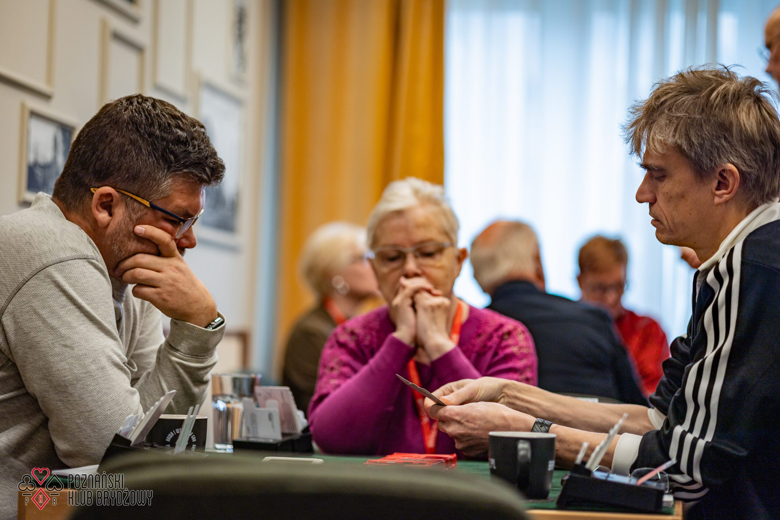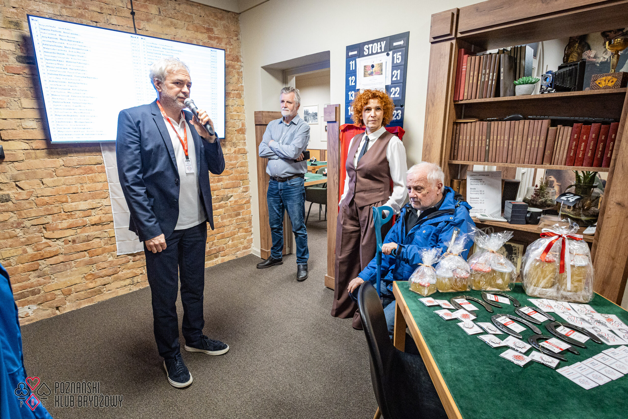 Wspieraliśmy się pobliską lokalizacją szkoleniową ustawiając tam 10 stolików, stanowiące 2 sektory. Zmiana do kolejnej rundy następowała po 10 rozdaniach i wówczas pary dokonywały zmiany przemieszczając się około 100 metrów na odcinku Klub – sala szkoleniowa. Okazało się, że ro rozwiązane nie było żadnym problemem. Przeciwnie – podobało się licznym, którzy wykorzystali chwilę spaceru na dotlenienie i zrelaksowanie się :).