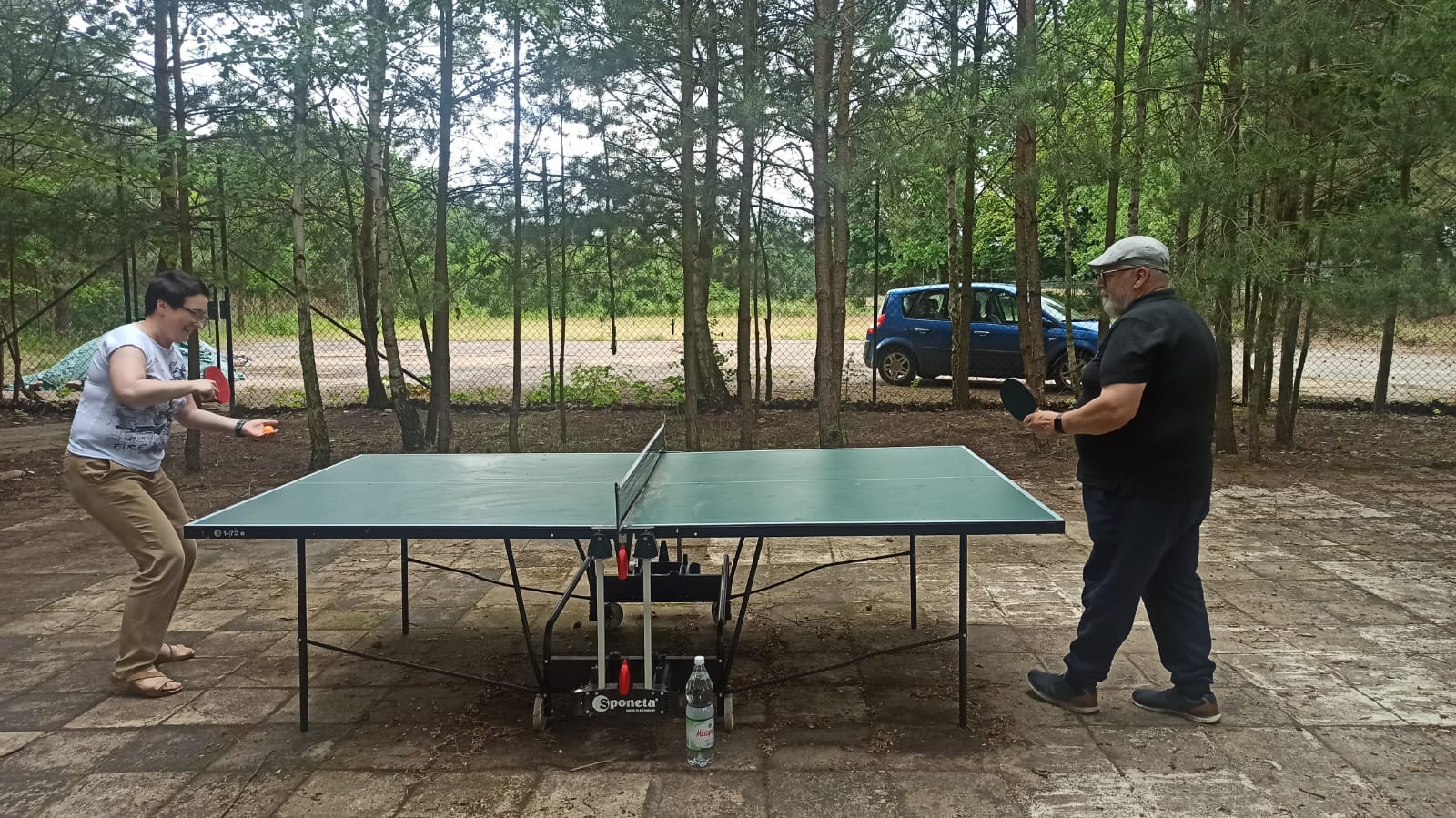 Na szczęście była też przestrzeń na oddech – relaksowaliśmy się w otoczeniu lasu i jeziora, a dla aktywnych czekał stół do tenisa stołowego, który przyciągał chętnych nawet o poranku.
