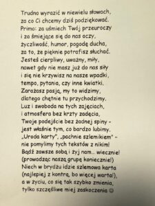 I kolejne, liryczne podziękowania dla jednego z naszych nauczycieli.